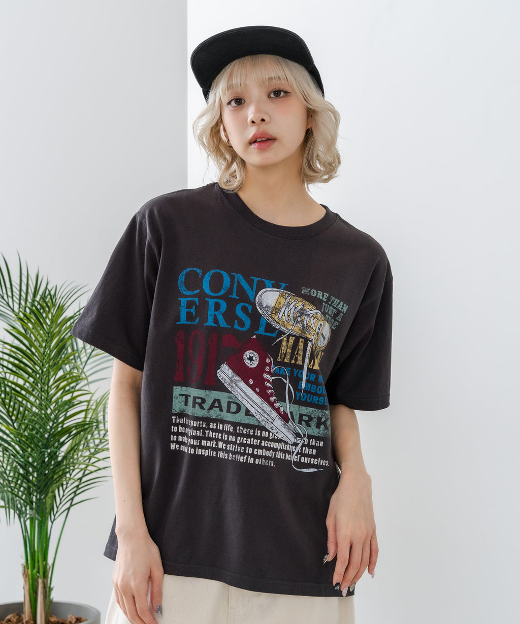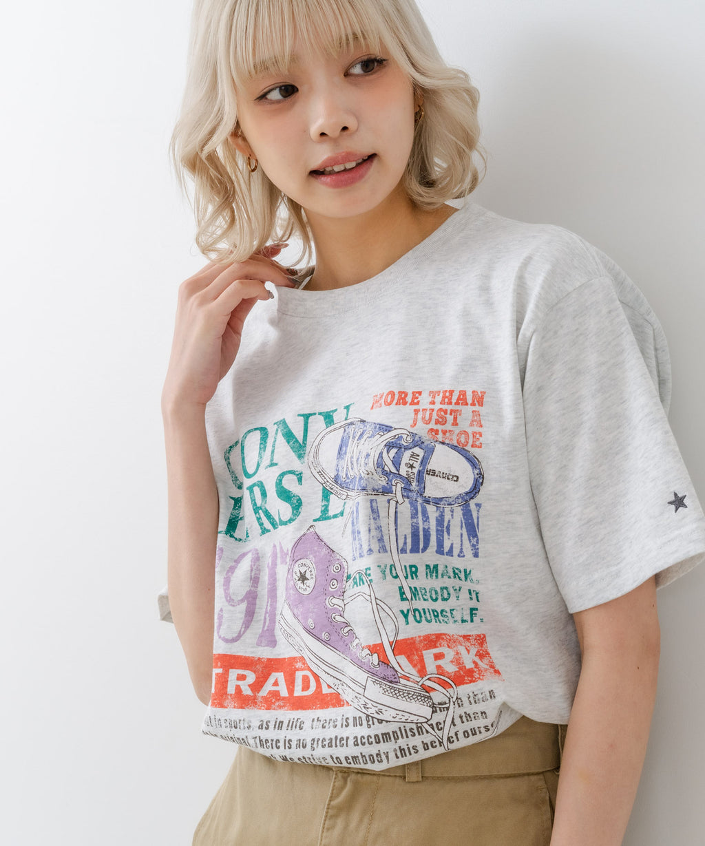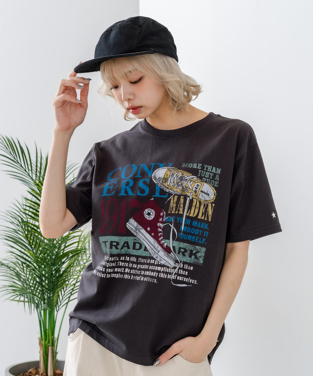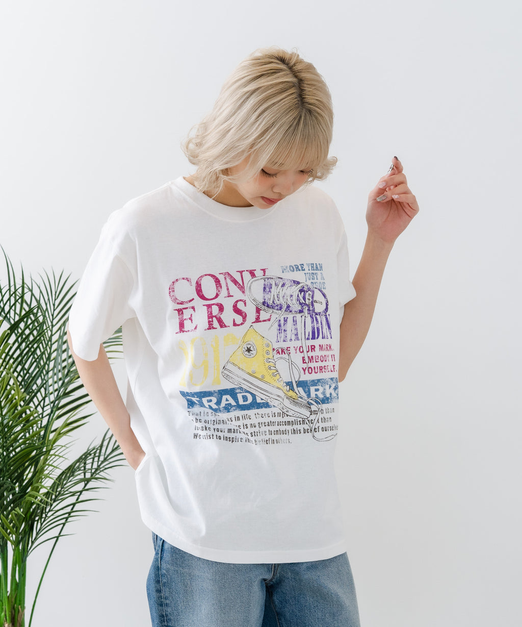 CONVERSEらしい、シューズグラフィックのプリントTシャツです。