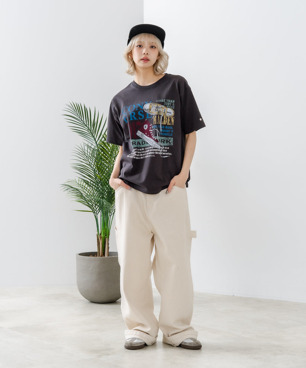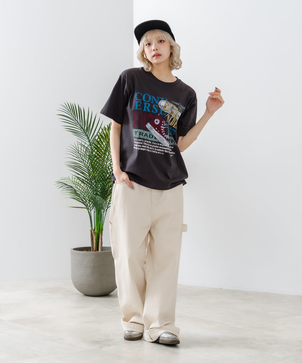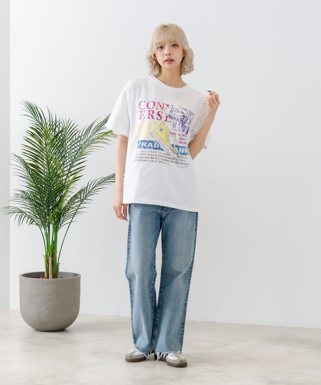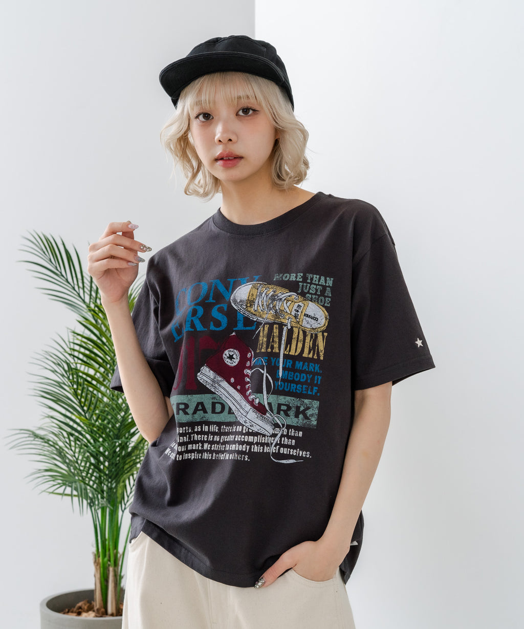 CONVERSEらしい、シューズグラフィックのプリントTシャツです。