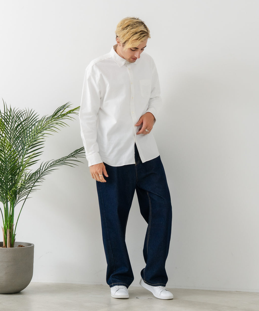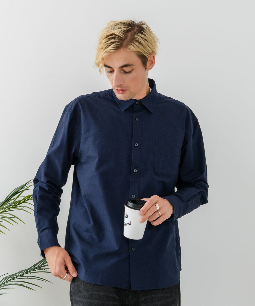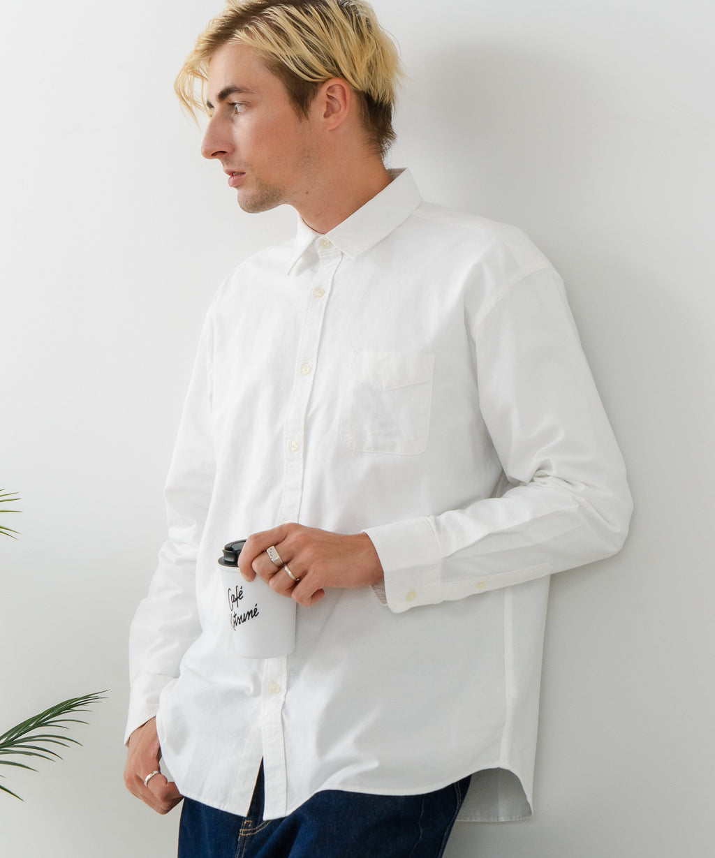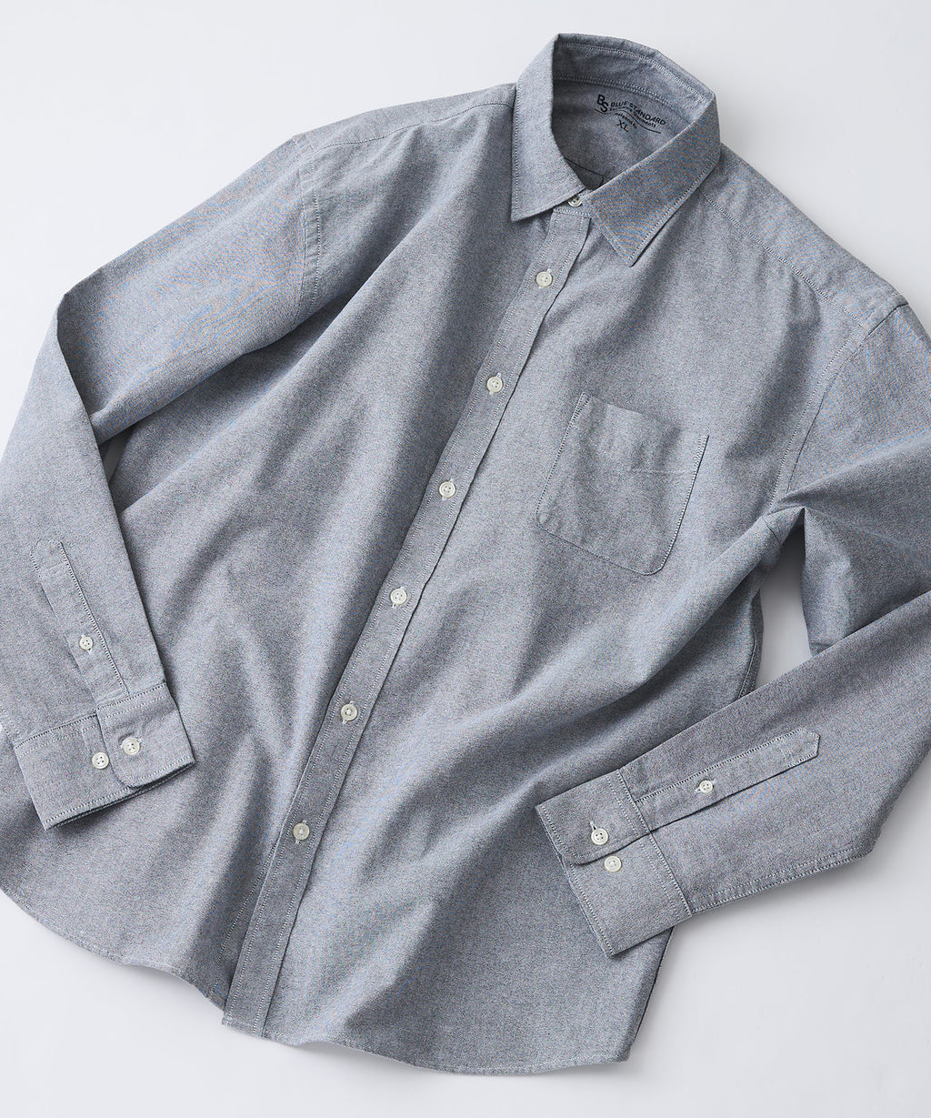 【BLUE STANDARD/ブルースタンダード】コットン100% オックスレギュラーカラー リラックスシルエットシャツ ビズ オフィスカジュアル オンでもオフでも