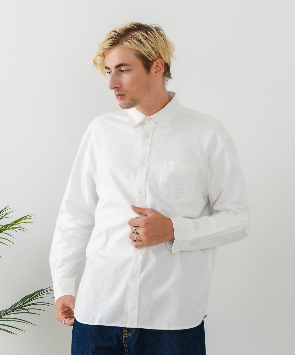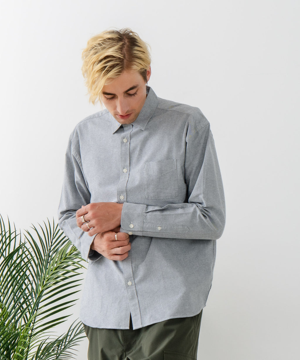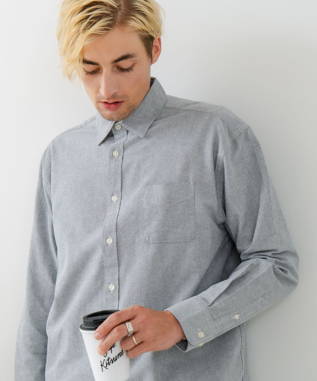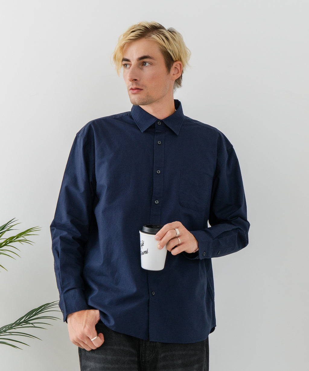 【BLUE STANDARD/ブルースタンダード】コットン100% オックスレギュラーカラー リラックスシルエットシャツ ビズ オフィスカジュアル オンでもオフでも