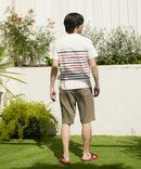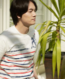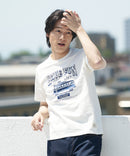 コットン100%の表面感あるスラブ生地を使用。スラブ生地は凹凸感がある事で肌に触れる面積を少なくし、サラッとした肌当たりの良さが夏にぴったりの素材です。また、その表面感がプリントを一層際立たせます。
