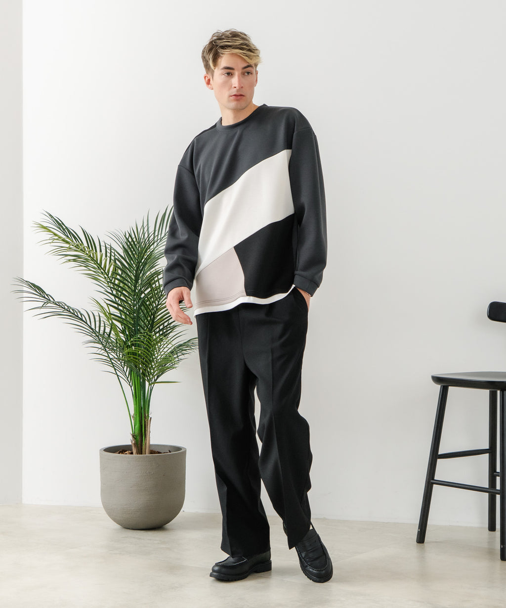 オーバーサイズのブルゾンやロングコート、ストライプシャツ、センタープレスパンツ、フレアパンツ、スラックスと合わせれば大人のキレイめカジュアルにも。