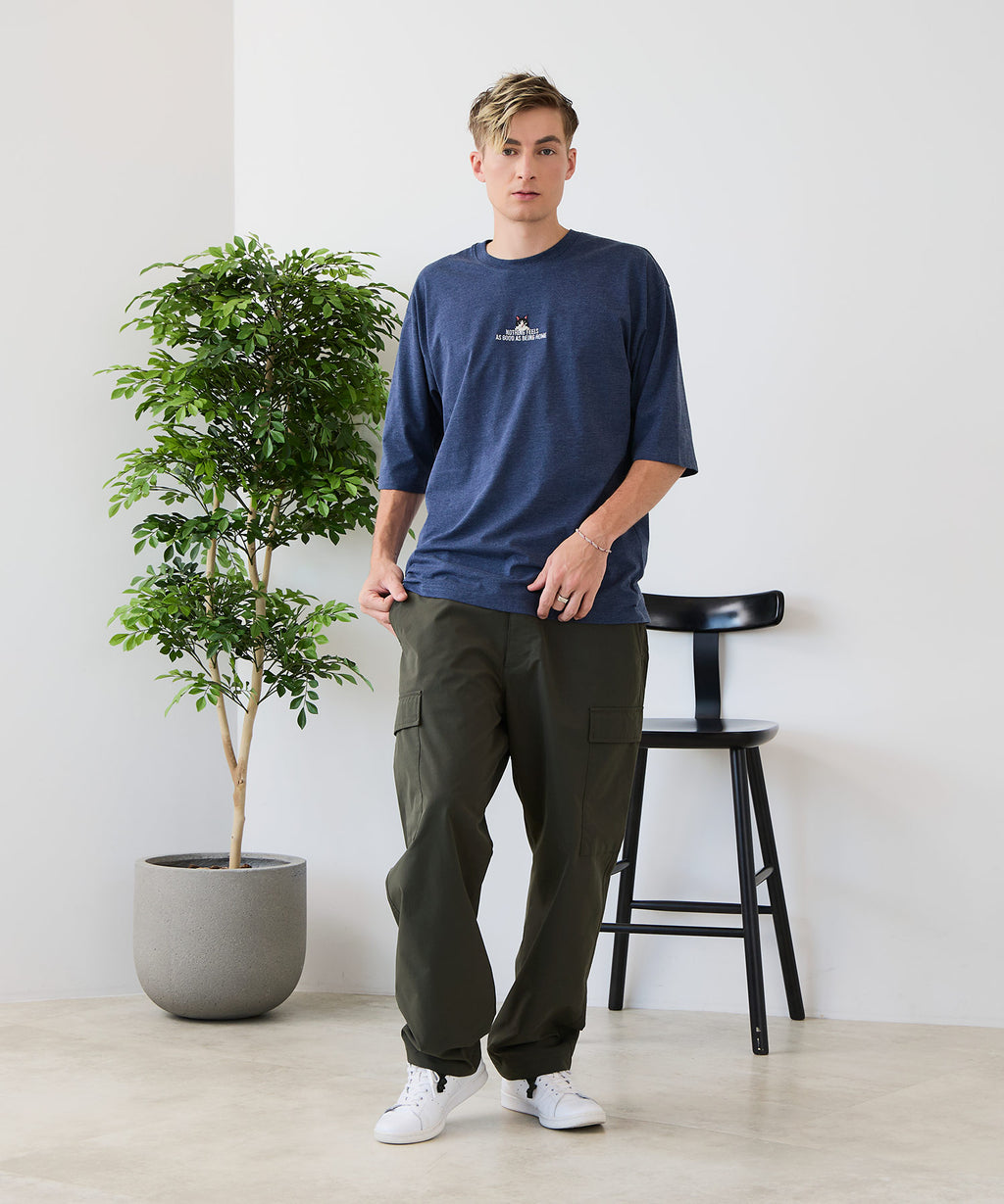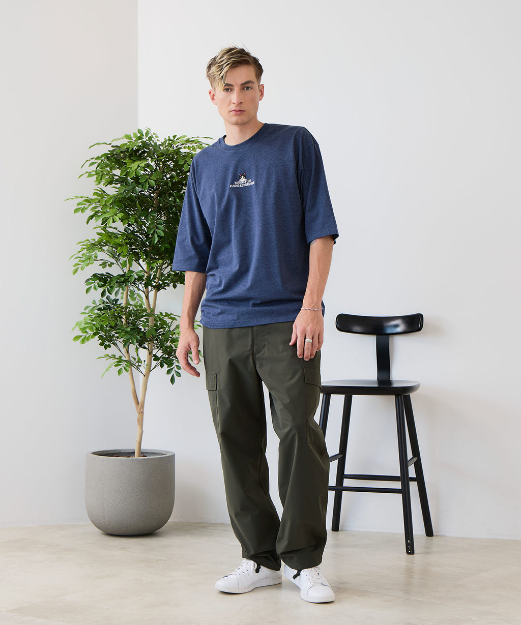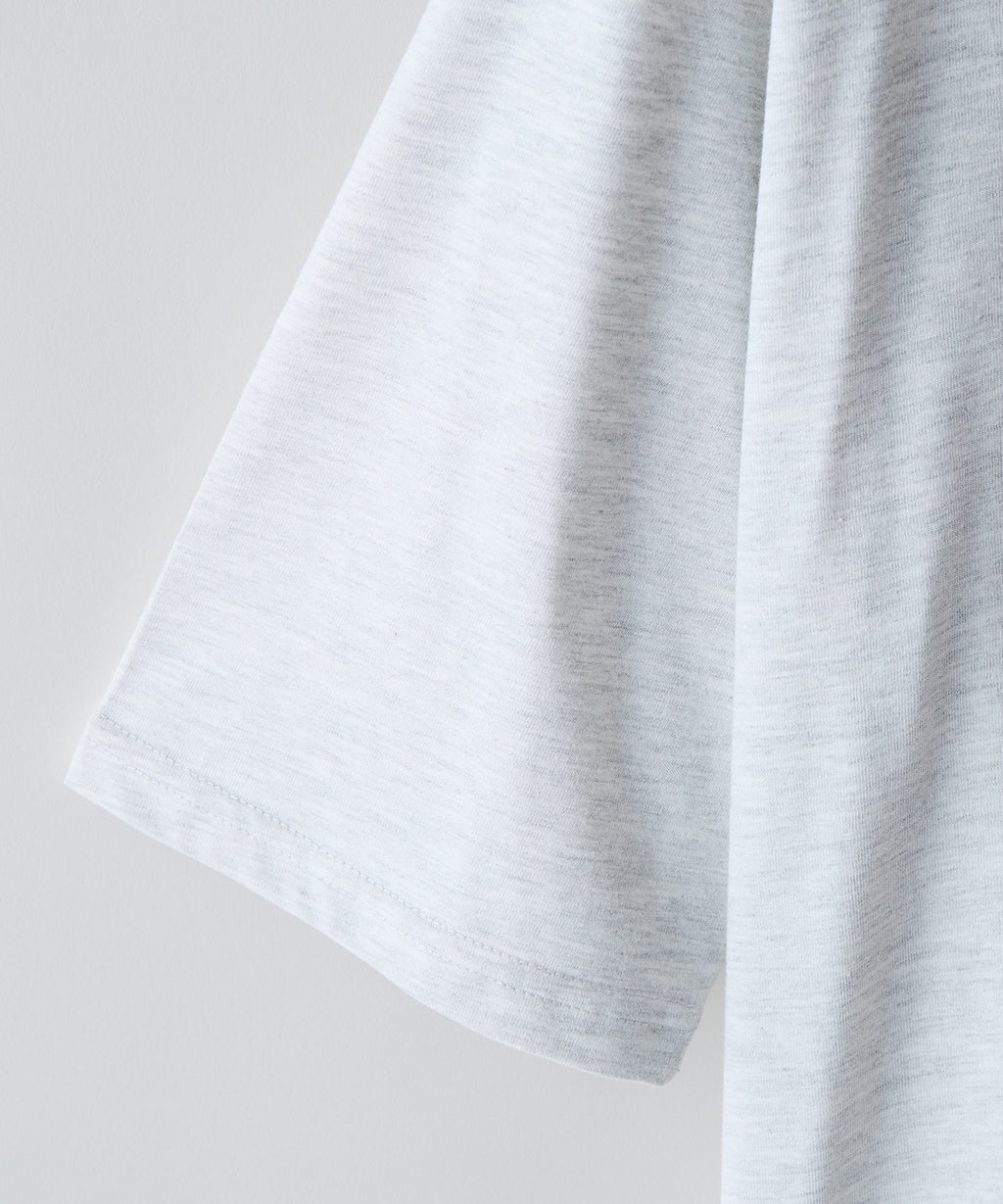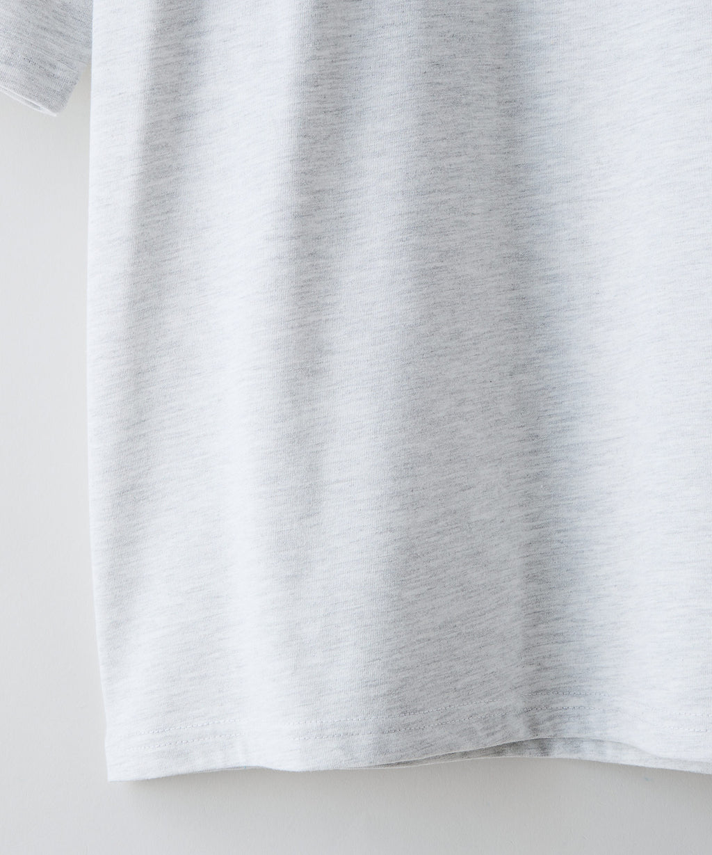 コットン60%とポリエステル40%のCVC天竺ボディを採用。手触りの良いタオル等でも使われる程よい太さの糸を密度高い編地で仕上げることで、綿タッチでしっかりした生地感のTシャツになっています。