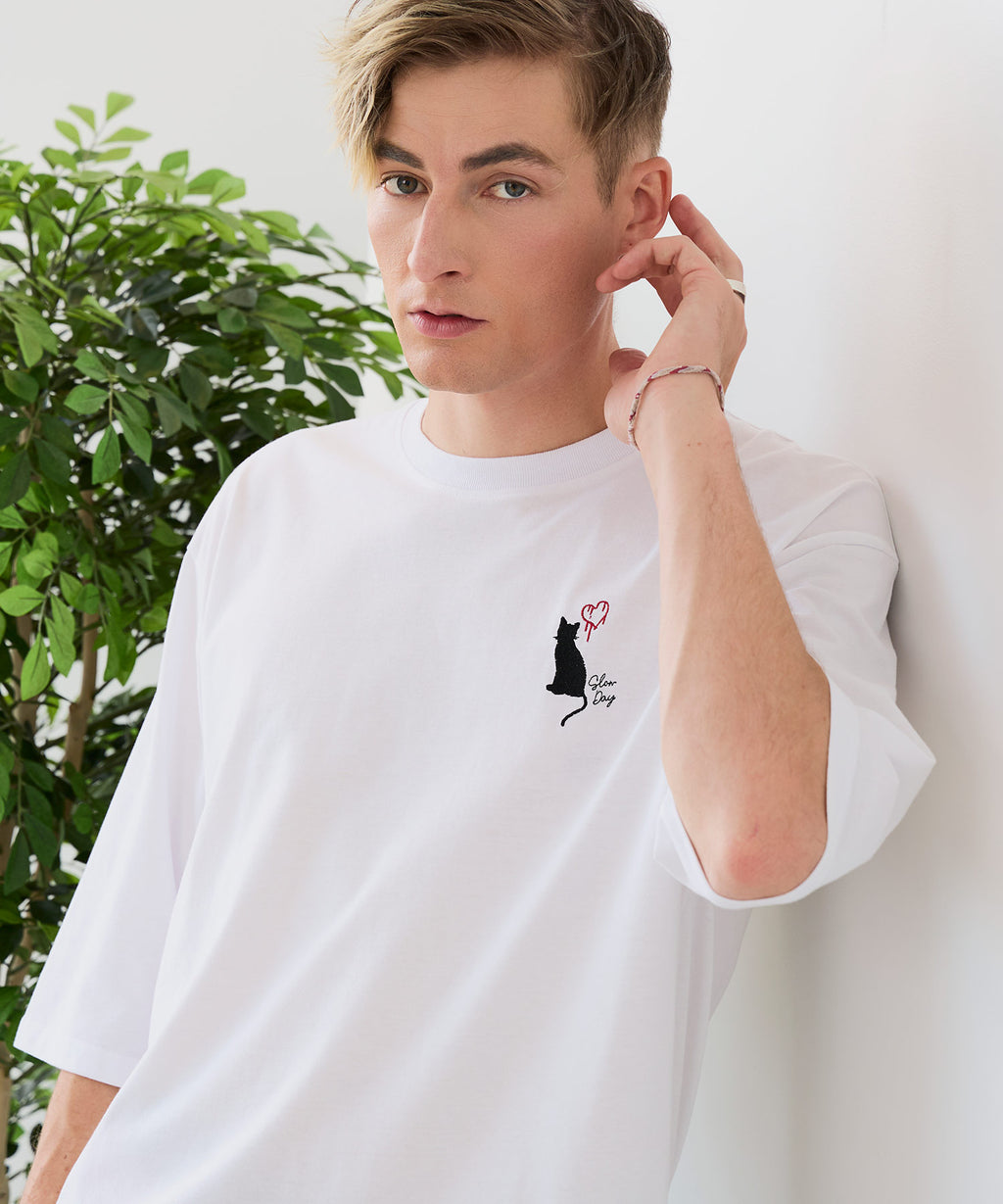 胸にアニマルモチーフのワンポイント刺繍が施されたトレンド感あるオーバーサイズTシャツは、夏のコーデの主役として大活躍間違いなし!